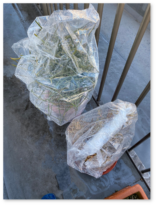ミルクブッシュなどの防寒にビニールシートをかぶせる
