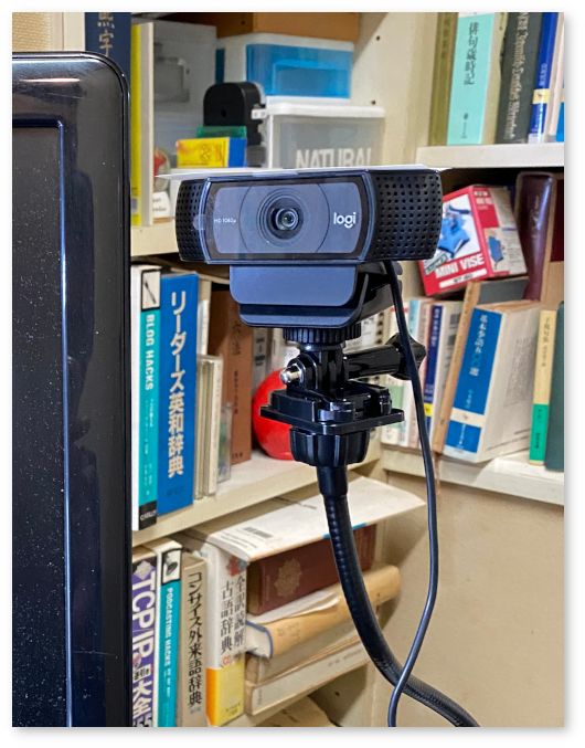 Linuxパソコンのウェブカメラのぐねぐねスタンドを、通販で買ったので設置した。