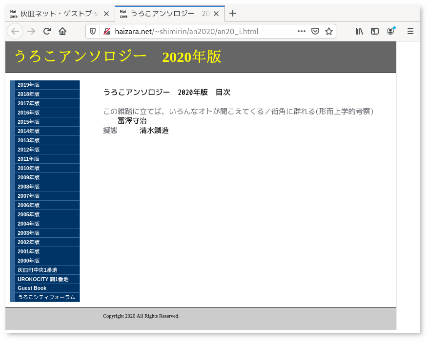 うろこアンソロジー 2020年版 目次