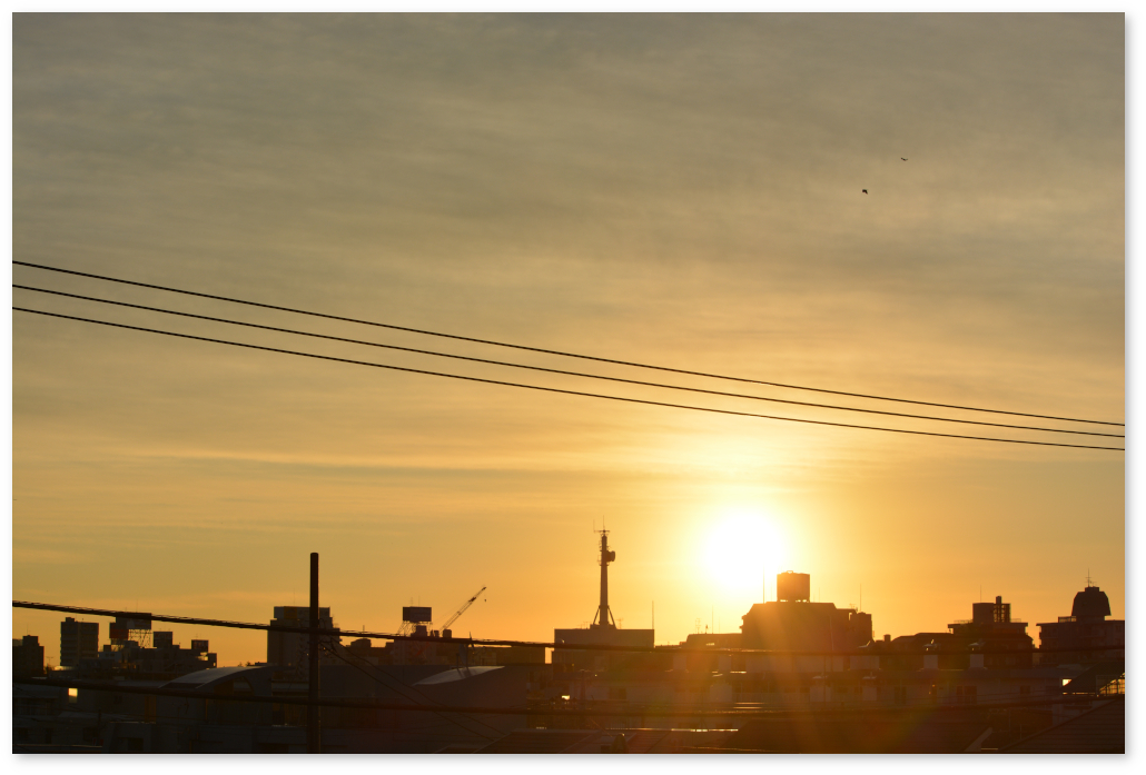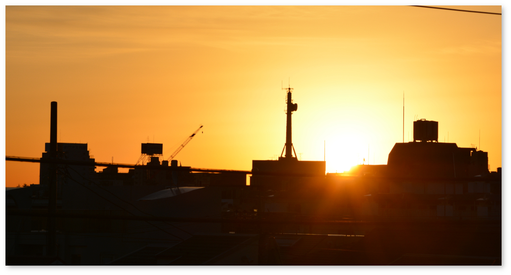 今日はちょうど日の出の時刻に起きたので、写真を撮った。