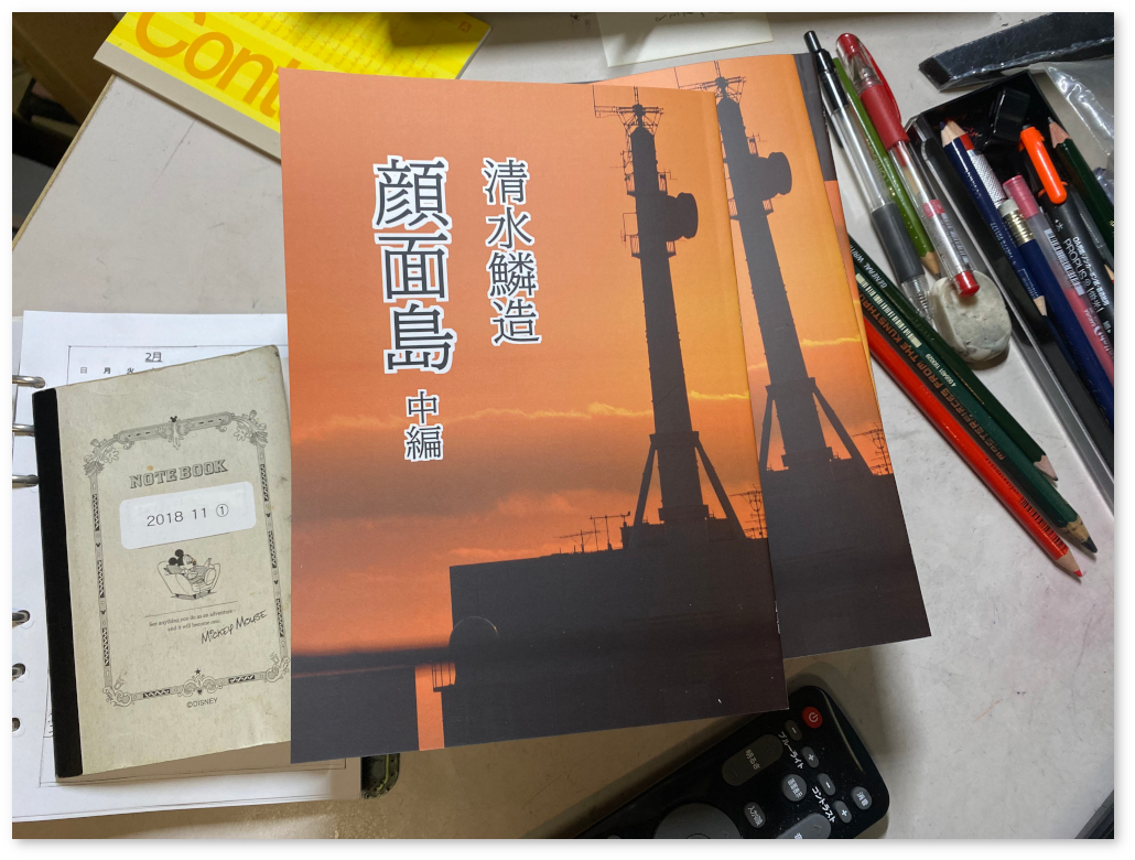 『顔面島 中編』のチェックはあらかた終わった。上編で付箋を貼っていったが、誤植というより推敲部分があるので、今回は付箋は貼らないことにした。