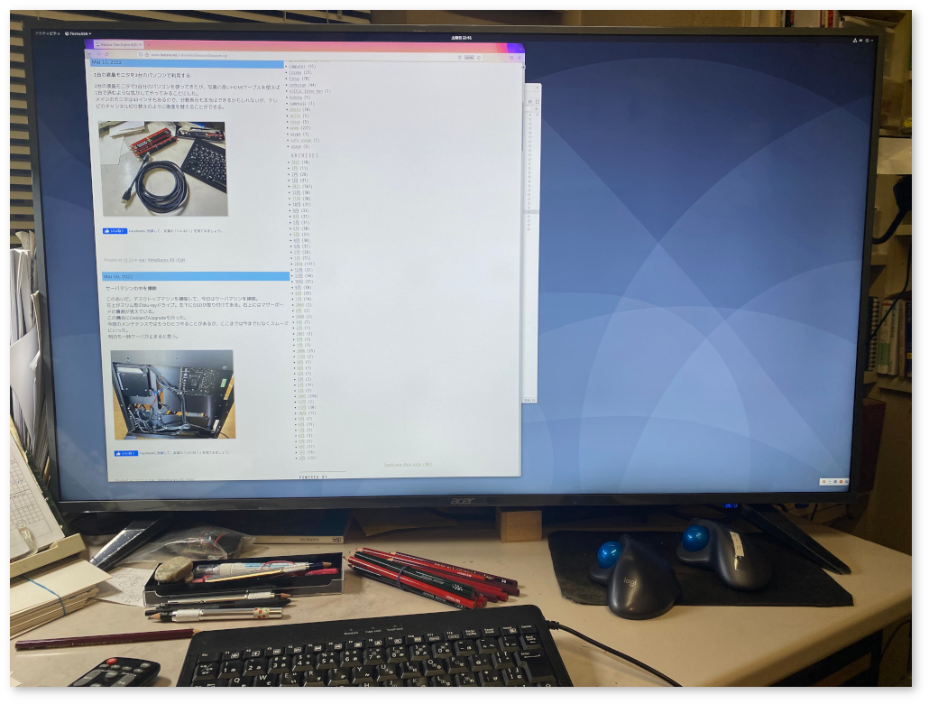 今日は灰皿町の雑談と、09の会の合評とパソコンのリモートビデオ会議機能が大活躍した。
