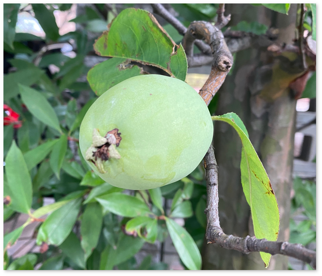 川にはよく柳の枝などが流れつき、そのまま大きくなることがあるが、写真はたくさんの実が成っている。拡大すると柑橘類にも見えるし、一瞬カキかなと思えるときもある。