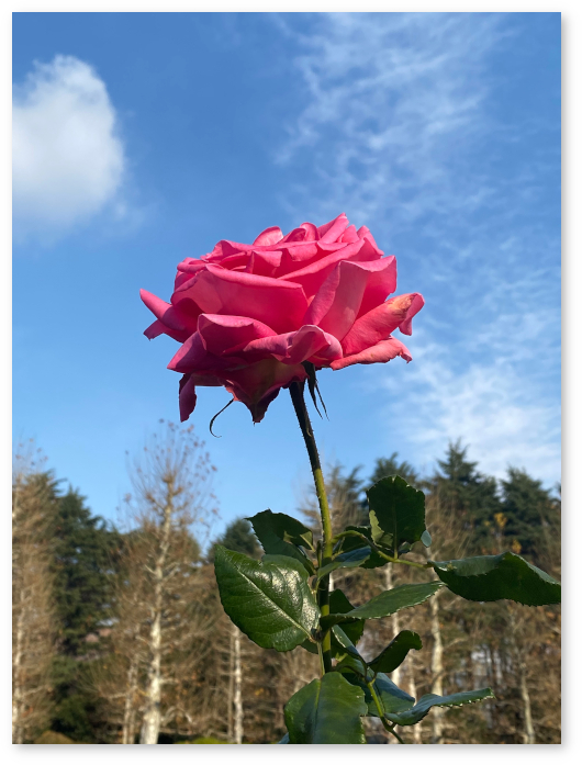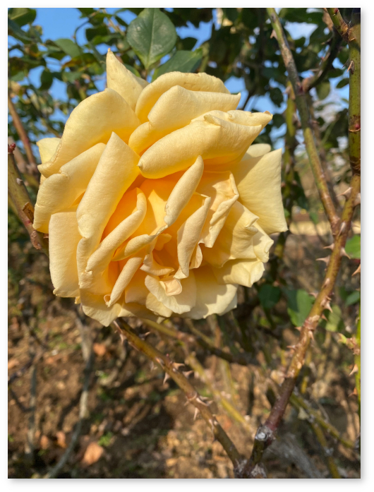 昨日、玄関先を年末の掃除していたら、通りかかった人が「バラがきれいに咲いていますね」と声をかけてきた。