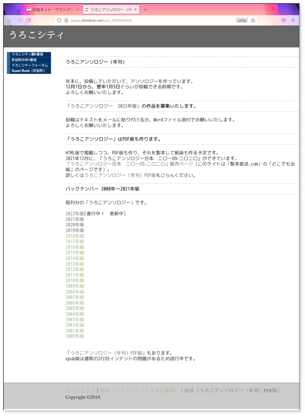 奮って投稿をお願いいたします! 「うろこアンソロジー2022年版」は上のURLページで順次、更新中です。