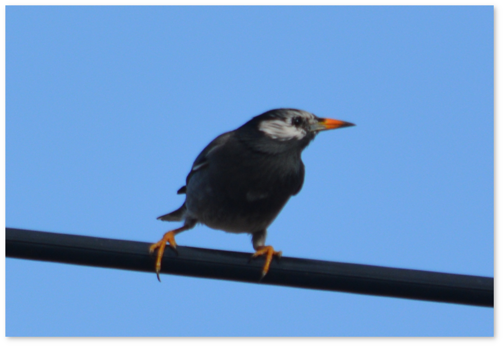 近くの電線に冬にはよくムクドリがとまる。先日の写真。