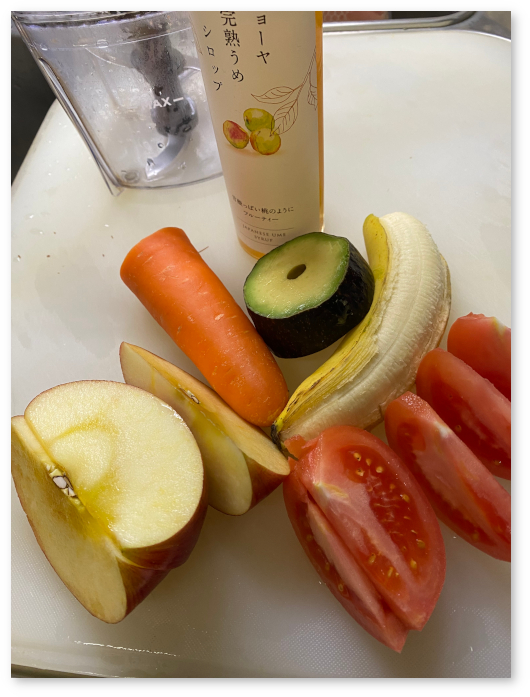 スムージーを作るときには、梅シロップは糖分があるようなので、あまりたくさん使えない。