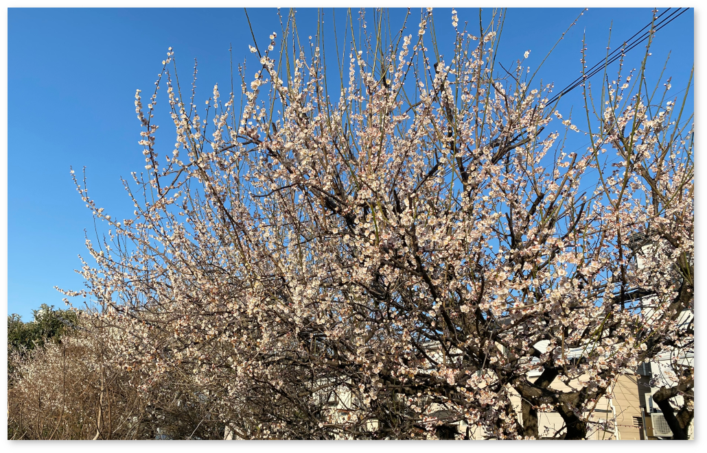 朝、散歩したときによく咲いている梅の木があった。
