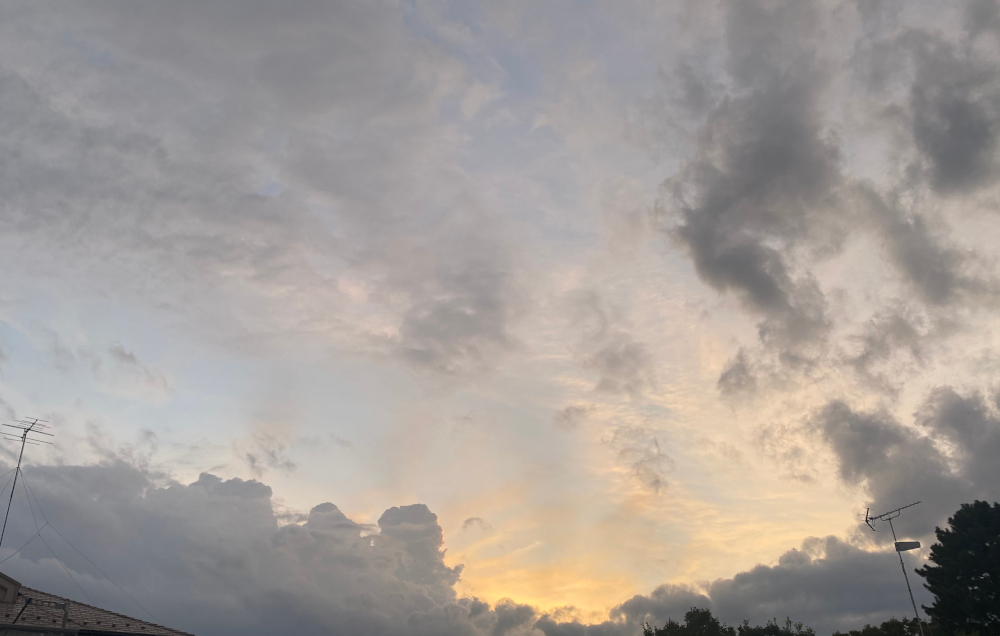 夕方に、雲の峰が夕日に照らされて崩れるような形に見えることがある。