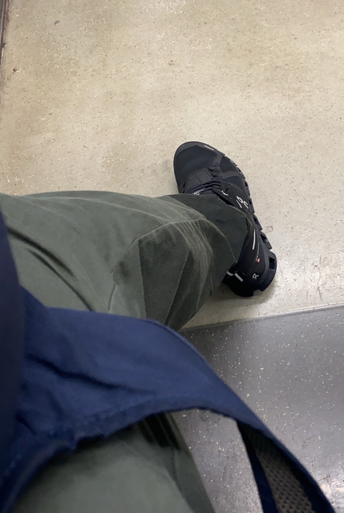 電車に乗るとふくらはぎのところが濡れている。靴は防水加工のものなので、足は濡れなかった。