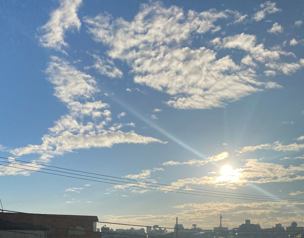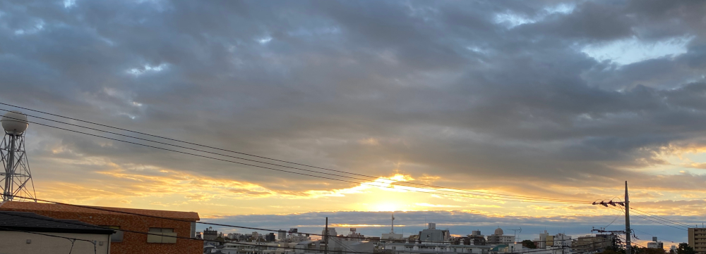 やっと秋になって、一眼レフカメラで朝の日を撮ろうとしたら、電池不足。