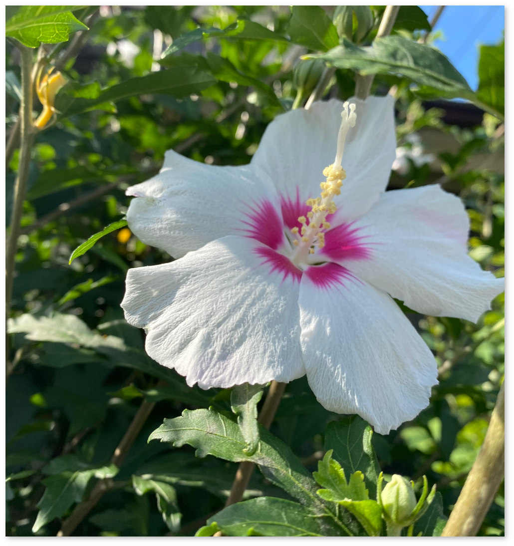 暑さのなかなぜか涼しそうにムクゲが咲いている